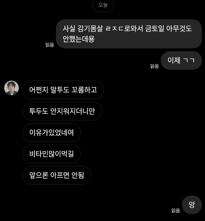 헬스 근육통도 금요일에 겹치고 그냥 그동안 피곤하게 살았어서 누적 데미지 때문에